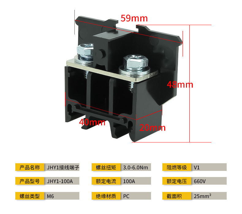 JHY1-100A接线羞羞视频在线下载适用与交流50HZ(或60HZ)额定电压660V或直流电压440V的电路中作为1.0MM2铜导线的连接之用,其性能符合GB/T14048。1-2000《低压开关设备和控制设备总则》也符合IEC947-7-1:2000的标